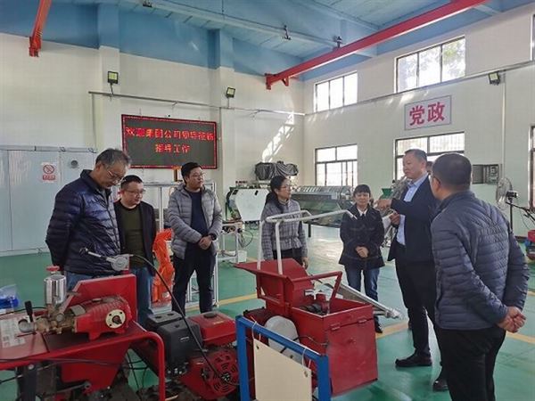 周總一行先后參觀了我所農(nóng)機裝備實驗室、水力實驗室,深入了解了我所在高精度自動稱量包裝設(shè)備、復混肥全自動生產(chǎn)線、畜牧機械、丘陵山地及果園機械、農(nóng)產(chǎn)品加工機械及非標產(chǎn)品設(shè)計開發(fā)等方面的技術(shù)研發(fā)能力。曹京蘭副所長從我所發(fā)展現(xiàn)狀、產(chǎn)業(yè)布局、產(chǎn)業(yè)鏈延伸、遠景規(guī)劃等方面進行了詳細的介紹。