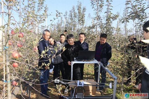 圖為西北農林科技大學機電學院果園機械研究團隊現(xiàn)場演示