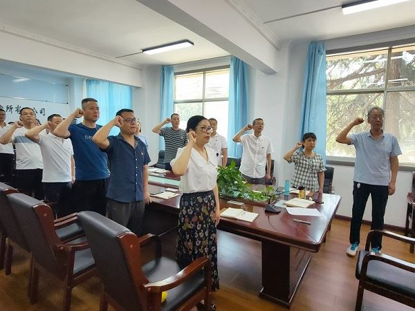 大會在雄壯的《國歌》聲中拉開序幕。在黨委書記寇德萬的領(lǐng)誓下,全體黨員一同宣誓,重溫入黨誓詞。面對鮮紅的黨旗,全體黨員共同高舉右拳,神情莊重、精神飽滿、聲音鏗鏘、句句千鈞,每位黨員再一次接受了心靈的洗禮,進一步堅定了立場信念和初心使命,增強了砥礪前行再出發(fā)的勇氣。