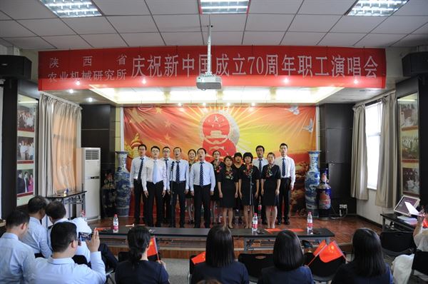 今年,是新中國(guó)成立70周年,也是陜西省農(nóng)業(yè)機(jī)械研究所建所61周年。9月29日下午,我所舉辦了以“奮斗吧,新時(shí)代的農(nóng)機(jī)人”為主題的職工演唱會(huì),慶祝中華人民共和國(guó)成立70周年。職工們用大合唱、獨(dú)唱、三句半、配樂(lè)詩(shī)朗誦、吉它彈唱等多種表演形式,表達(dá)對(duì)祖國(guó)的深情祝福,對(duì)農(nóng)機(jī)所的無(wú)限熱愛?!段覀冏咴诖舐飞稀贰吨袊?guó)中國(guó)鮮紅的太陽(yáng)永不落》《國(guó)家》等一首首贊歌唱出了對(duì)祖國(guó)的心聲,唱出了拼搏向上的熱情,唱出了團(tuán)結(jié)一心的力量,唱出了農(nóng)機(jī)人的光榮與自豪。演唱會(huì)最后,全體職工揮舞國(guó)旗,高唱《我和我的祖國(guó)》,激情滿懷向建國(guó)70周年獻(xiàn)禮,祝福我們的祖國(guó)更加繁榮昌盛,人民幸福美滿!